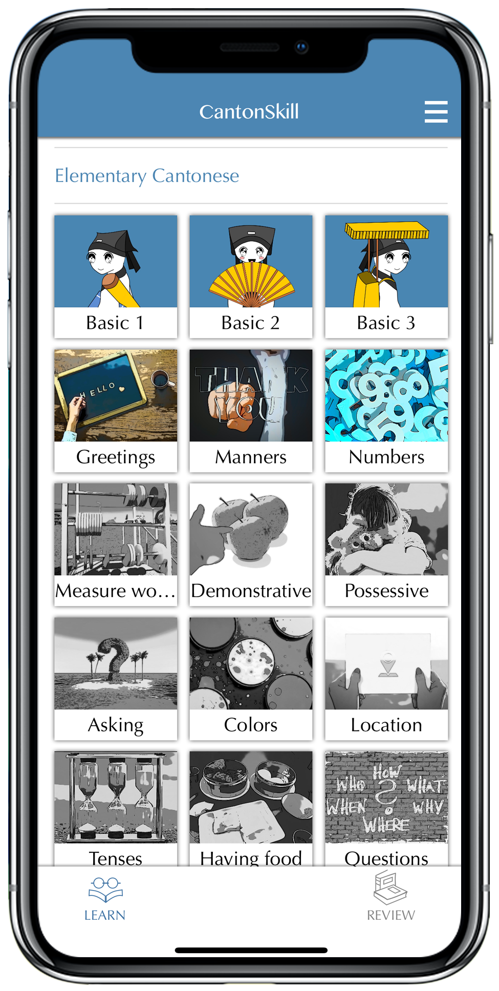 The app contains numerous enjoyable lessons, helping you learn to understand and to speak daily conversational Cantonese.